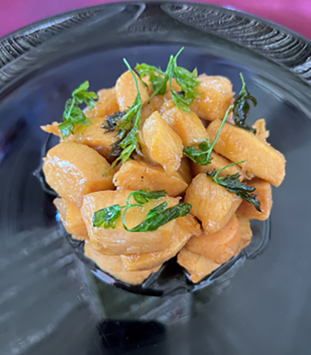 Serve the shrimps with the mango and vanilla chutney and decorate with ITAGA vanilla pods.