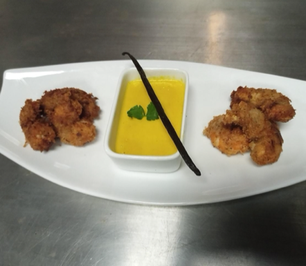 Serve the shrimps with the mango and vanilla chutney and decorate with ITAGA vanilla pods.
