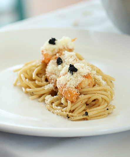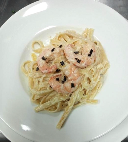 In another saucepan, heat olive oil and add onion, garlic and the shrimps. Cook with the ITAGA natural vanilla extract until mixture thickens. Add pasta and mix well.